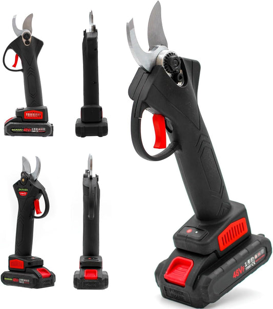 Forbici da Potatura Elettriche con 2 Batterie da 48V e Lama in Acciaio Inox, Set Completo con Valigetta